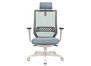 Кресло для руководителя EXPERT WHITE BLUE №44821 - объем: 0,181 м3, вес: 16,6 кг, механизм качания без фиксации, ограничения по весу: 120 кг, основание: пластик, каркас: немонолитный, подголовник, подлокотники, поясничный упор, регулировка по высоте, сетка в спинке, в наличии в Смоленске.