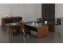 Мебель в кабинете руководителя должна быть выдержана в деловом стиле, но обладать при этом оригинальностью и подчеркивать его вкус. Стандартизированные комплекты, которые приобретаются для персонала, тут не подойдут. Нужно что-то необычное, современное и функциональное. Отличным вариантом станет данный комплект, имеющий нестандартную конструкцию, но в то же время строгие и правильные линии. Отсутствие привычных перегородок, проемы и углубления, делающие мебель визуально тонкой и почти прозрачной, выгодно отличают его от классической и уже приевшейся офисной мебели.