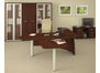 Кабинет руководителя Танго – это удачный микс простоты и современного стиля. В лаконичных деталях мебели прослеживается дизайнерская направленность в духе минимализма. Светлые фасады эффектно контрастируют с более темным корпусом. Использование стеклянных дверок добавляет ансамблю некой воздушности. Металлическая фурнитура и опоры столов наделяют офисную мебель требуемой строгостью и сдержанностью. Столешницы выгнутой формы со сглаженными углами привносят в деловой характер комплекта толику изящества.